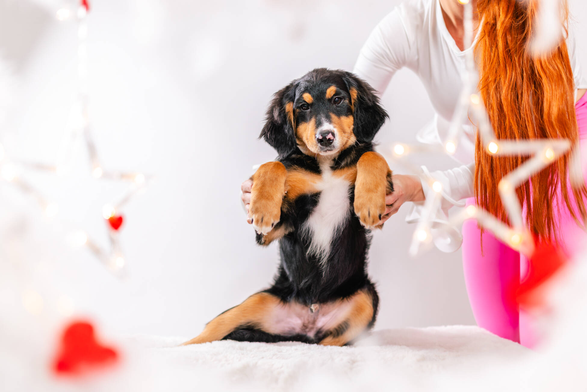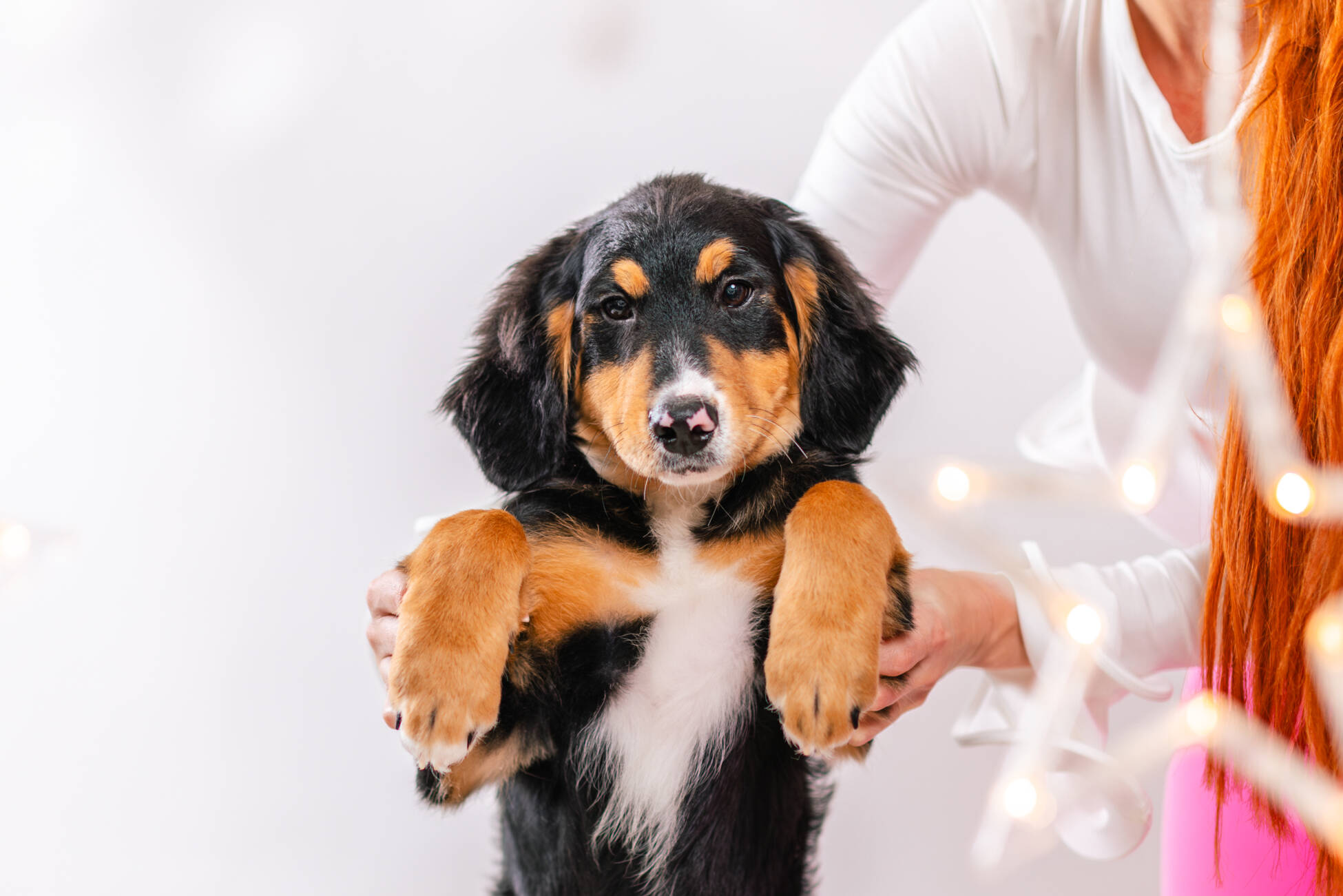 • We Breed: Mini F1 Bernedoodle (Bernese Mountain dog + Mini Poodle)