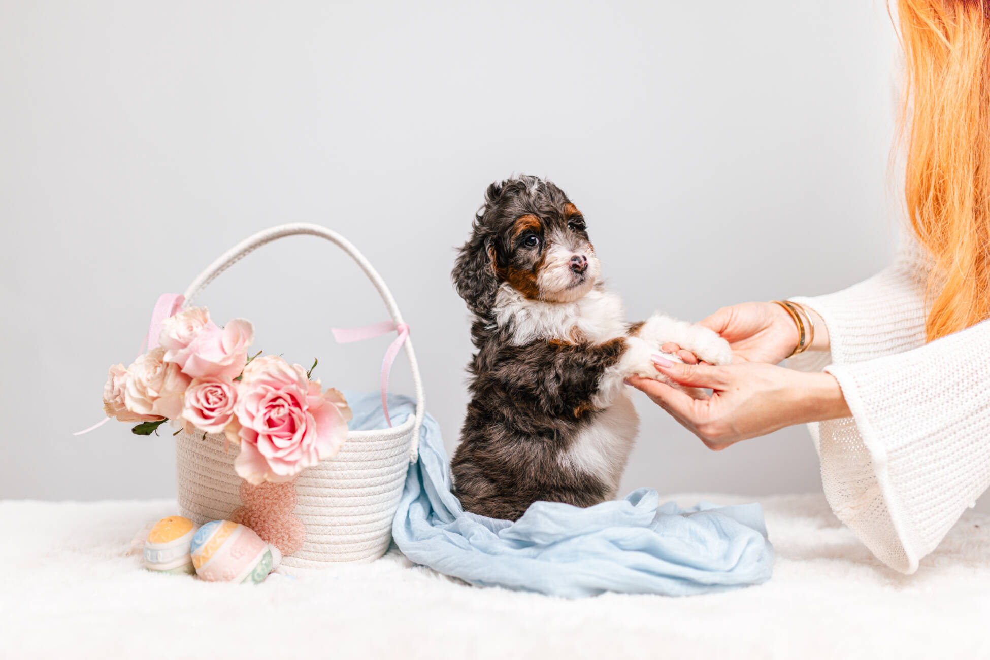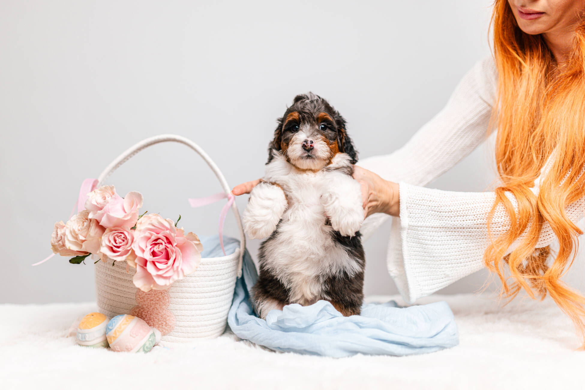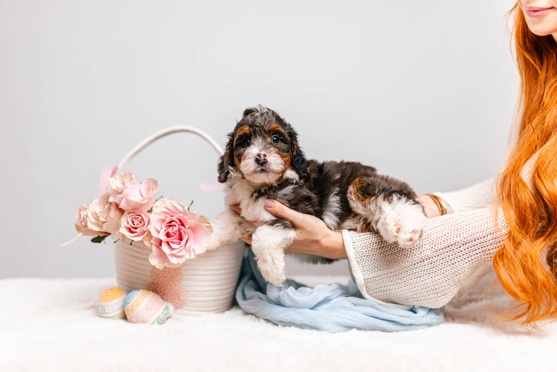 • We Breed: Mini F1 Bernedoodle (Bernese Mountain dog + Mini Poodle)