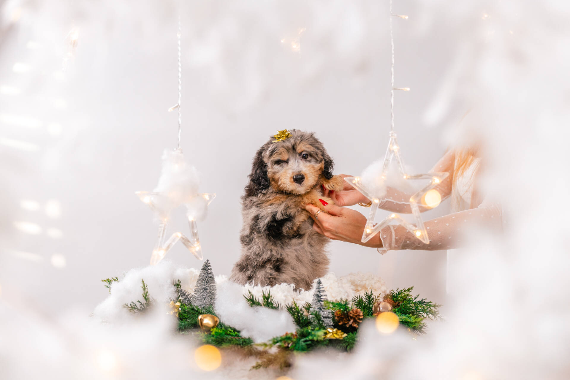 Meet Birdie, a mini Bernedoodle girl whose beautiful merle coat is as unique and charming as she is. Her heart is full of love and a playful spirit, always ready for a new game or a sweet cuddle session. This delightful puppy is ready to fly into her forever home and fill it with endless joy and companionship.