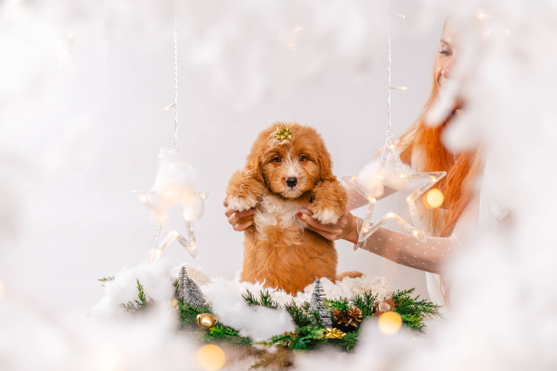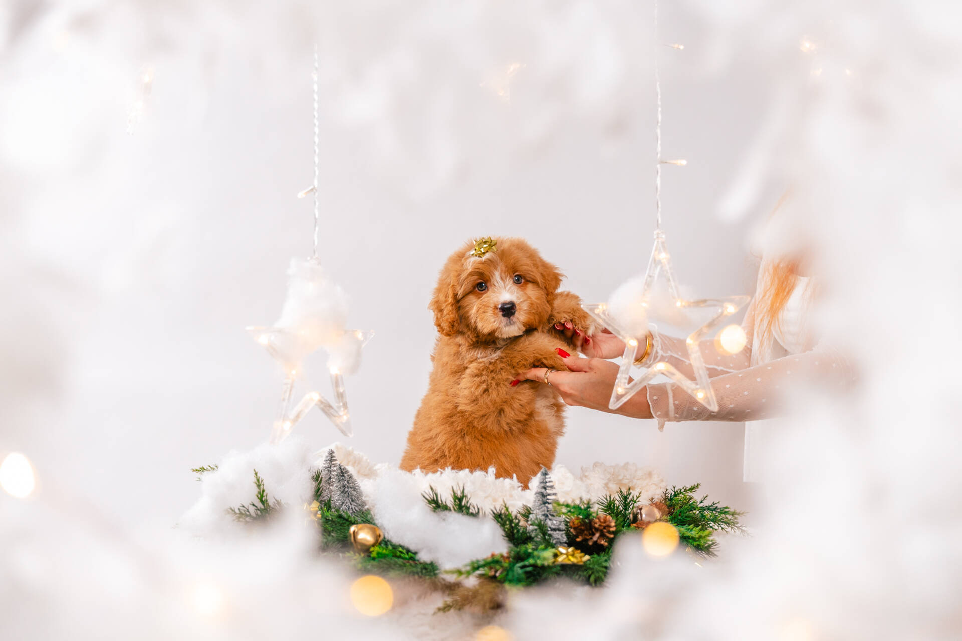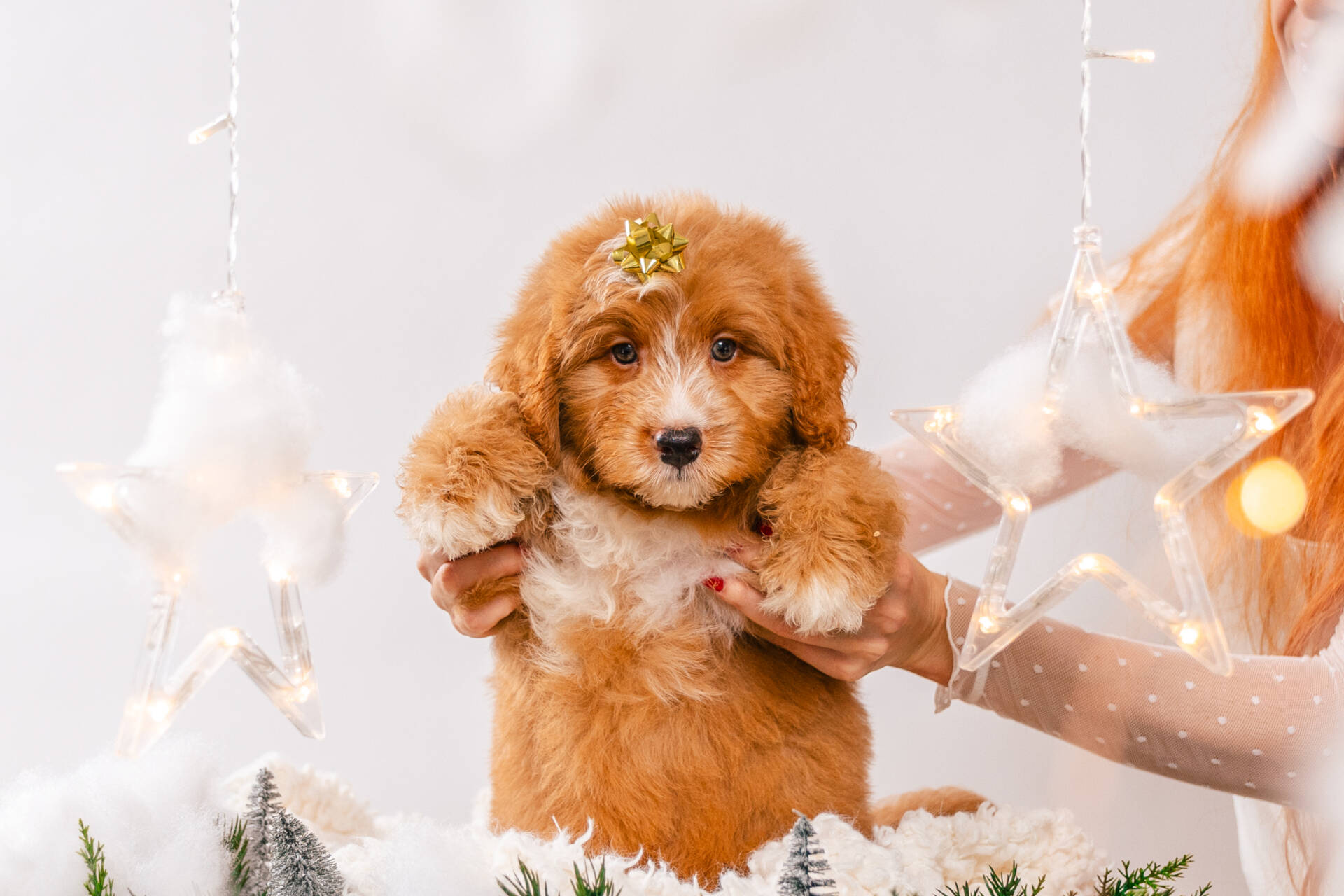 Meet Biscuit, a mini Bernedoodle boy whose warm golden and white coat is as sweet as his name. His playful nature makes every day an exciting adventure, whether he’s chasing a ball or exploring the garden. This loving and fun-filled puppy is ready to become the perfect sidekick for all your family’s activities and cuddle sessions.