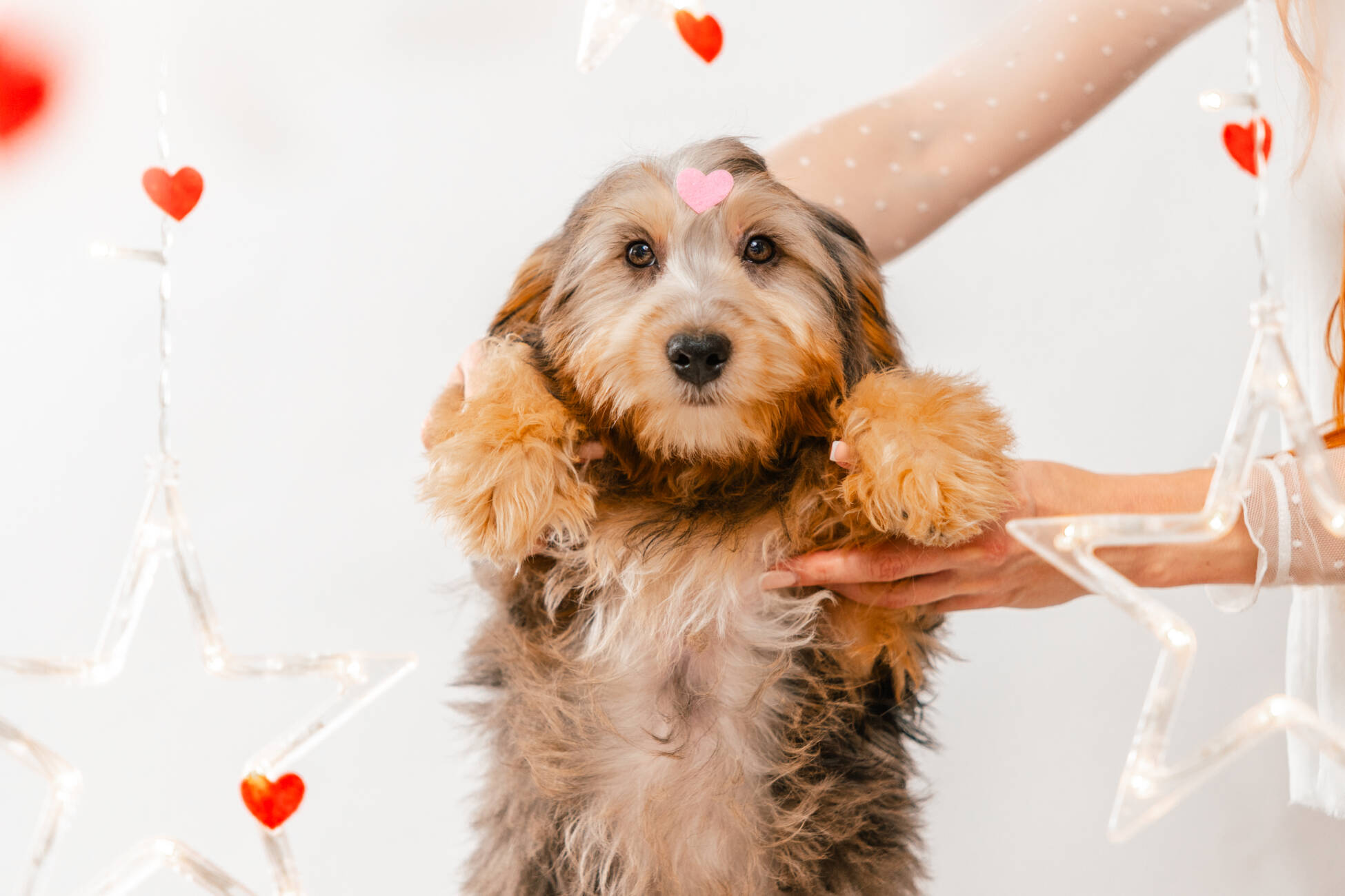 • We Breed: Mini F1 Bernedoodle (Bernese Mountain dog + Mini Poodle)