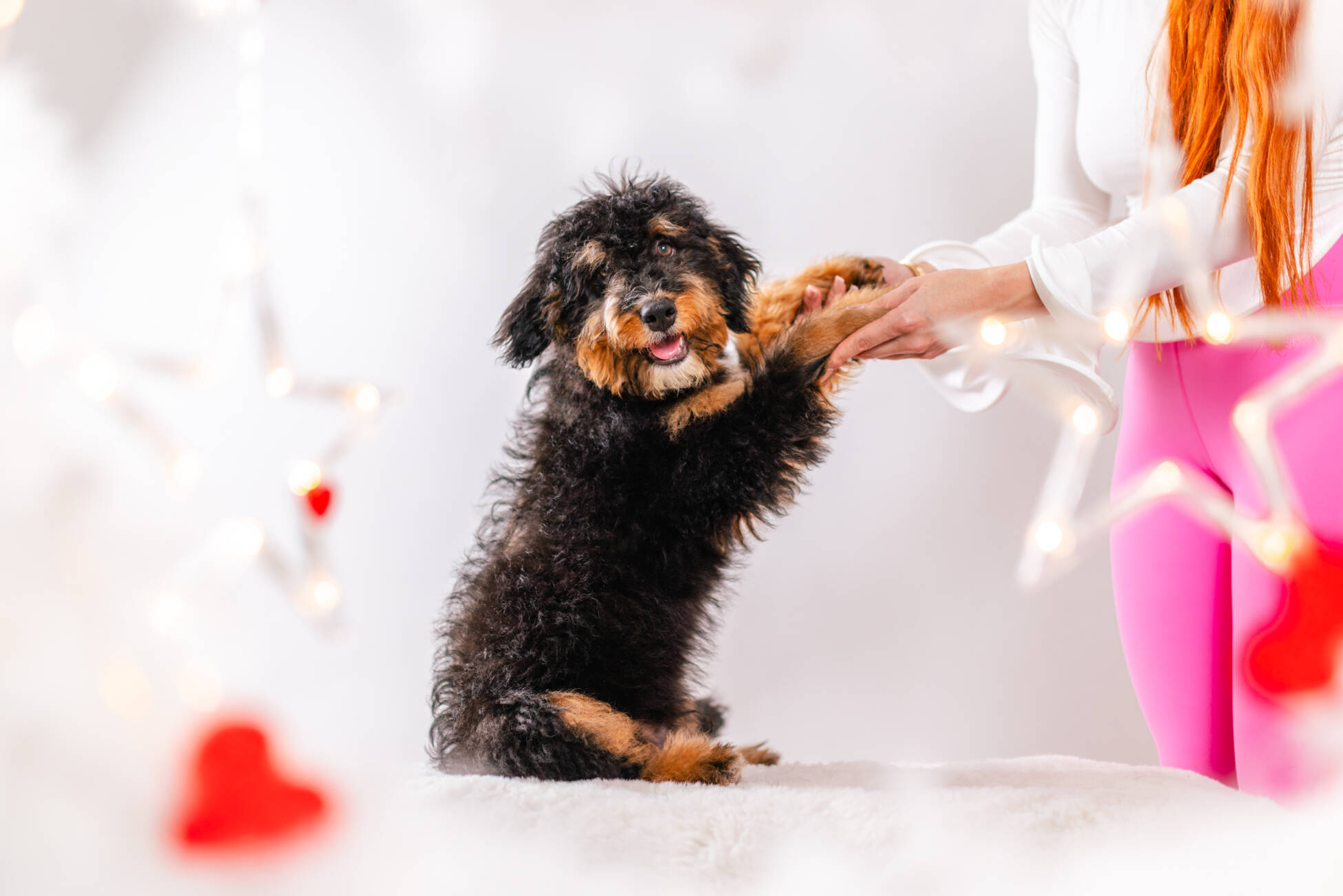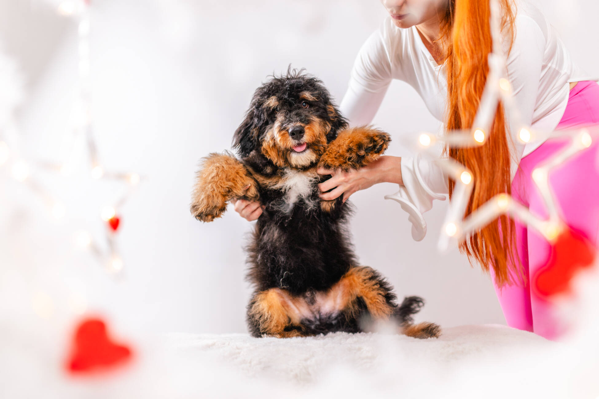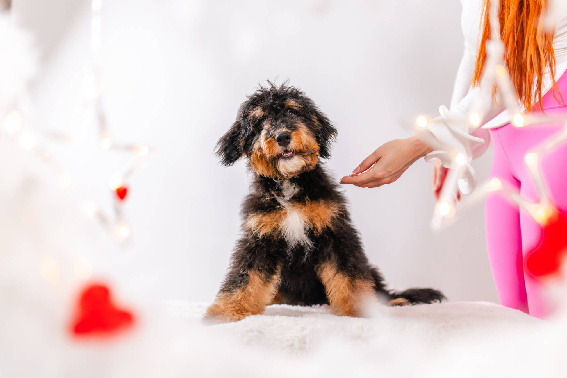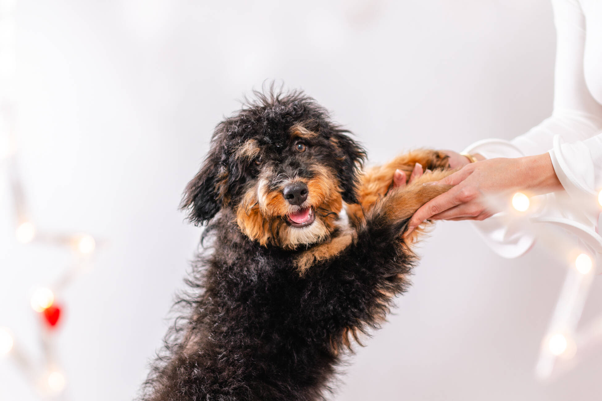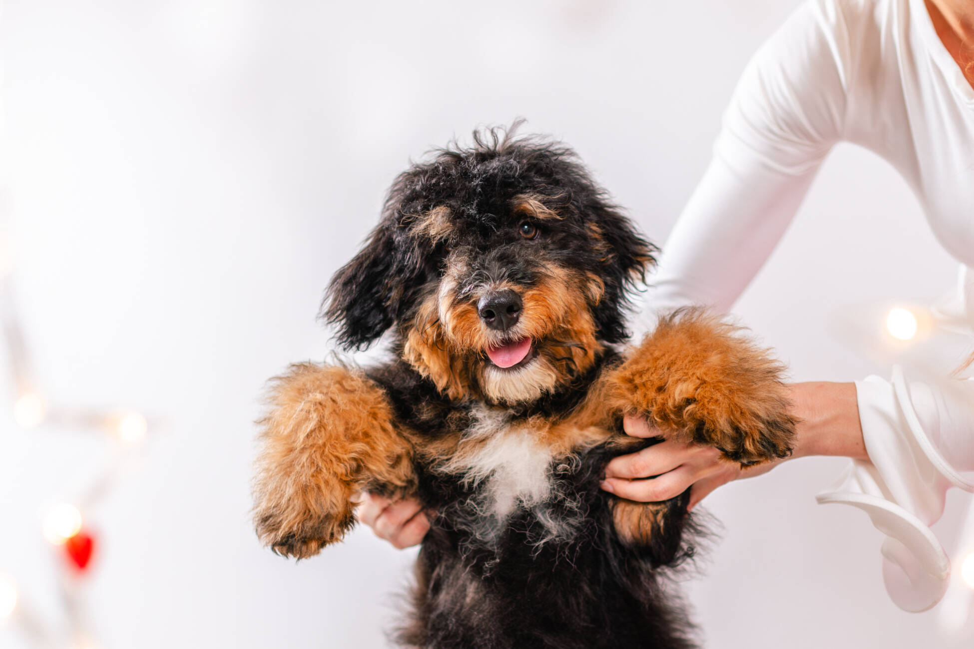 • We Breed: Mini F1 Bernedoodle (Bernese Mountain dog + Mini Poodle)