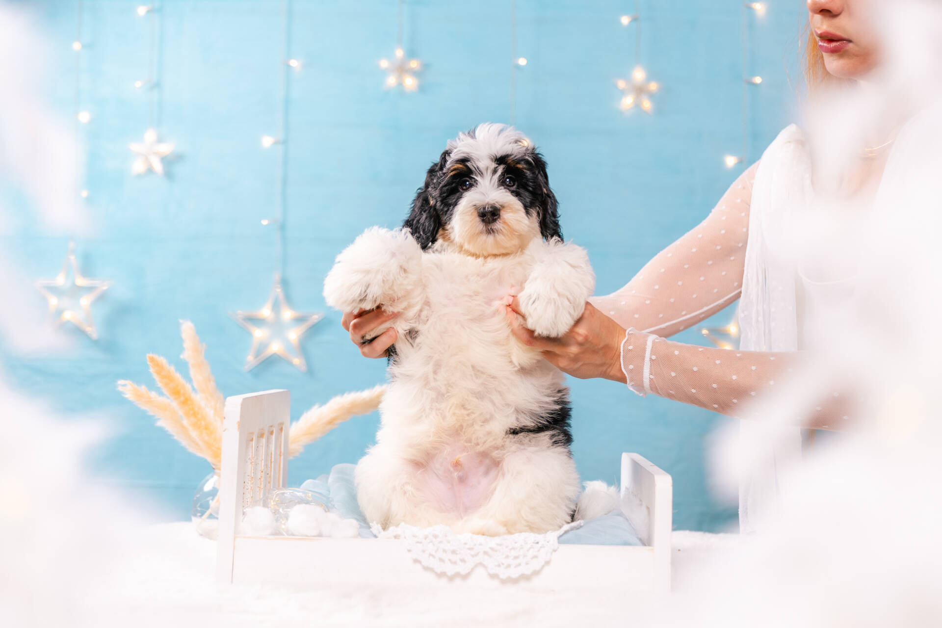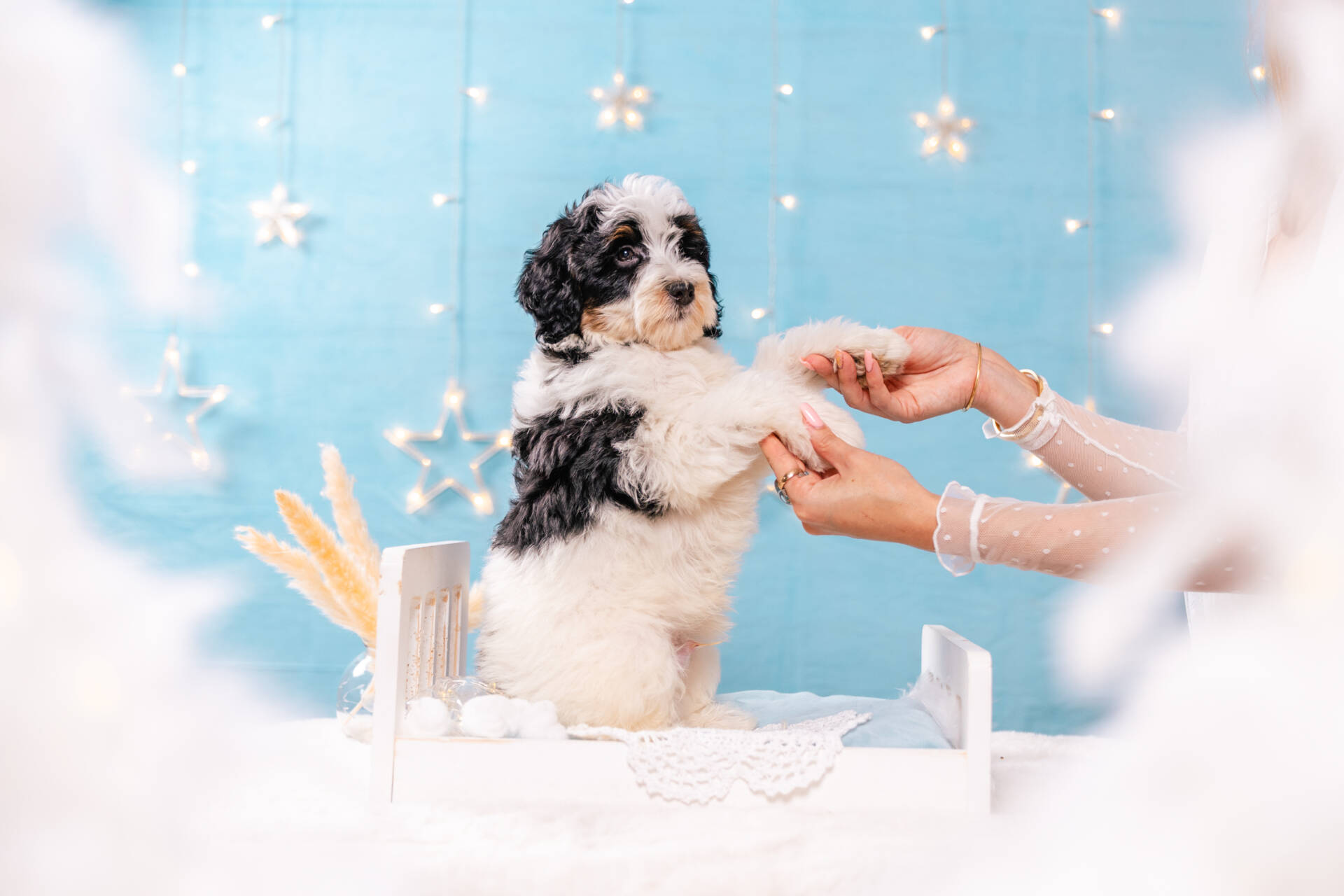 - Breed: Mini F1b Bernedoodle (Bernedoodle mini+ Poodle mini)
