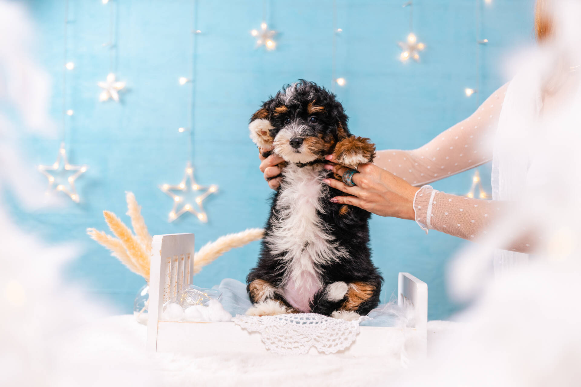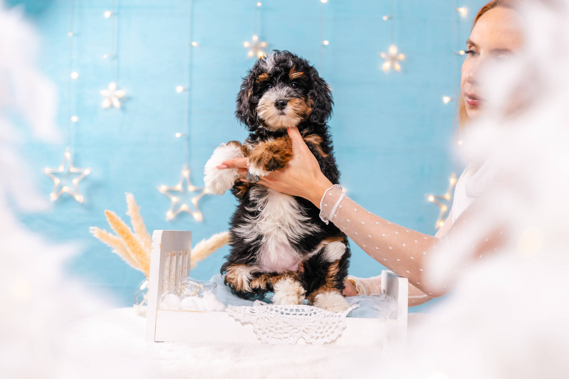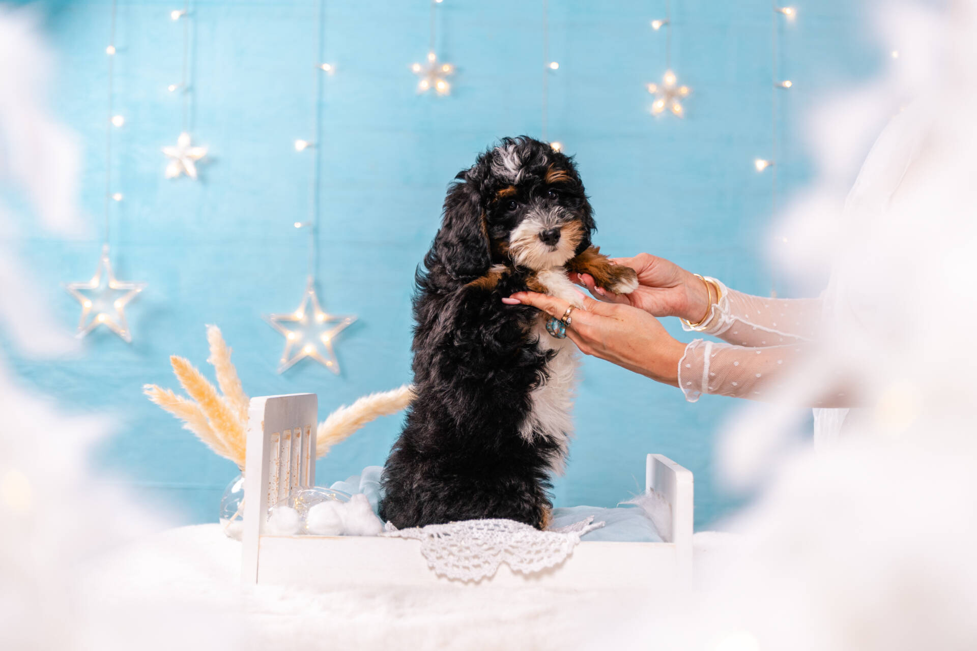- Breed: Mini F1b Bernedoodle (Bernedoodle mini+ poodle mini)