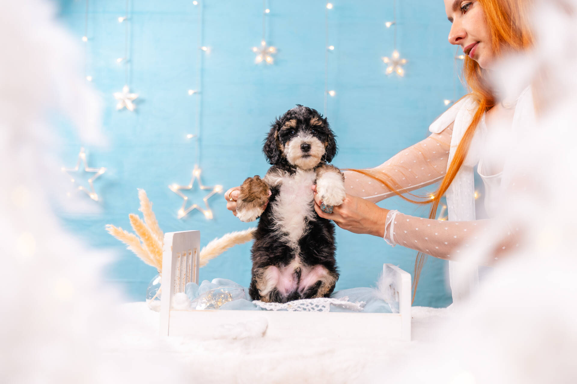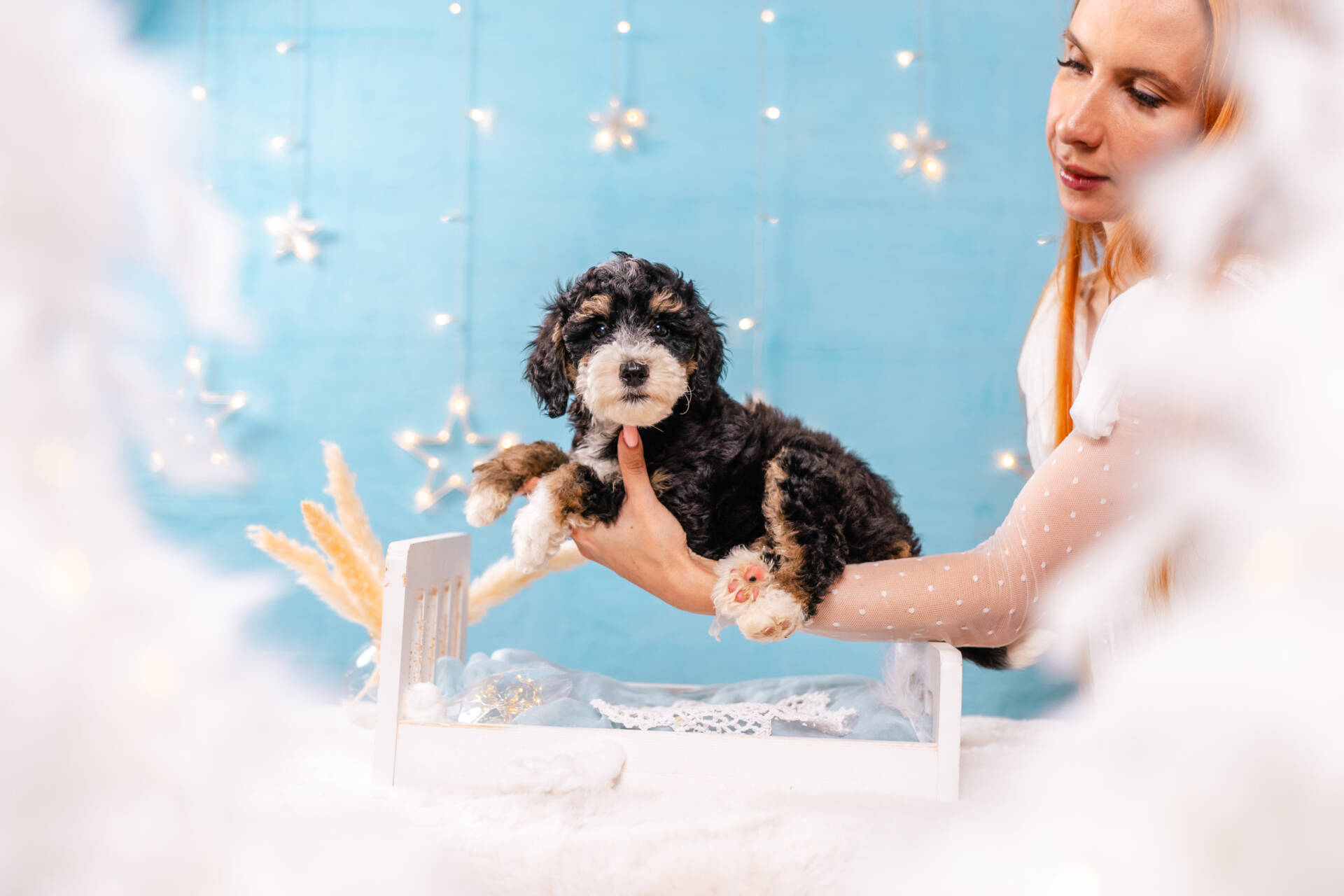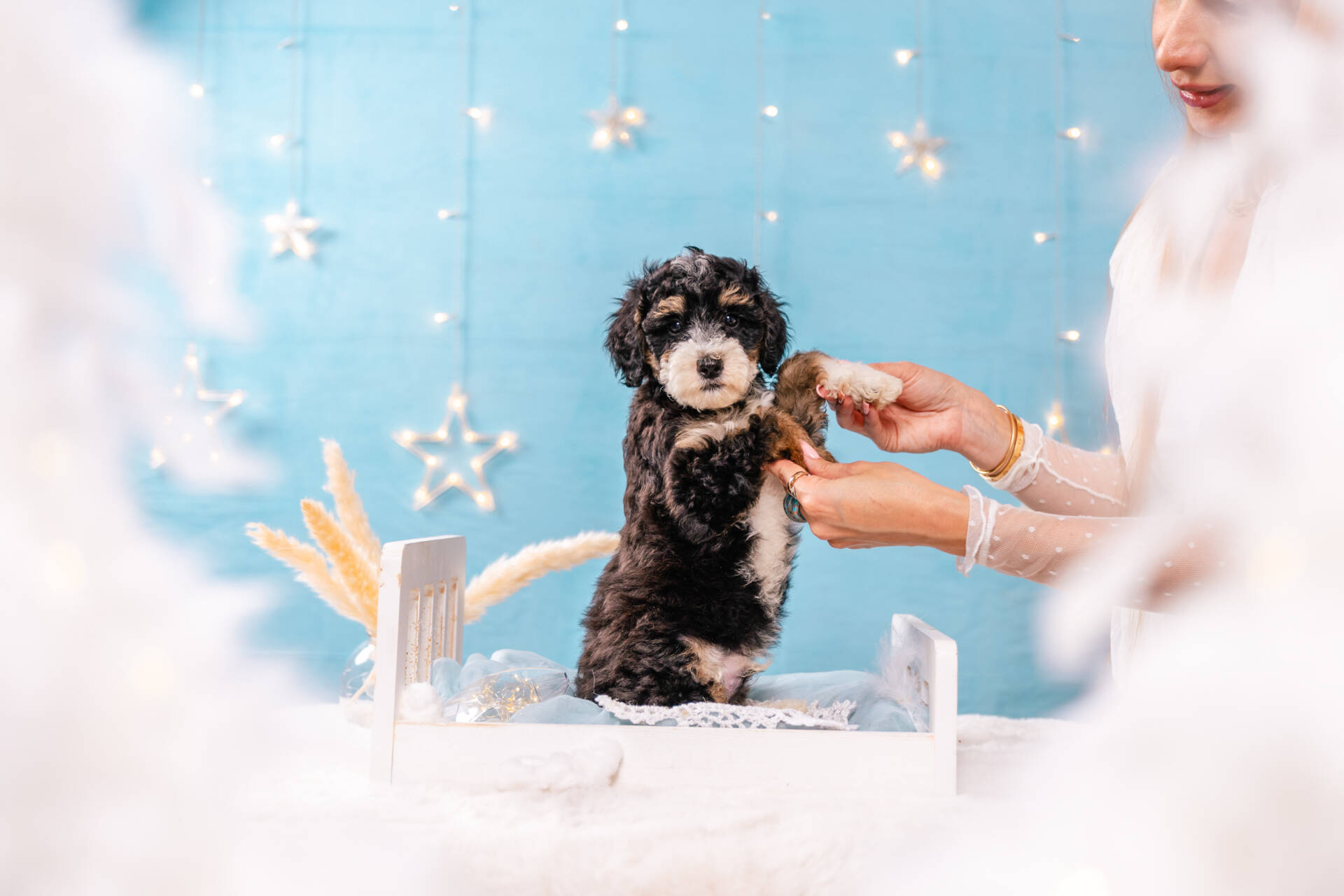 - Breed: Mini F1b Bernedoodle (Bernedoodle mini+ Poodle mini)