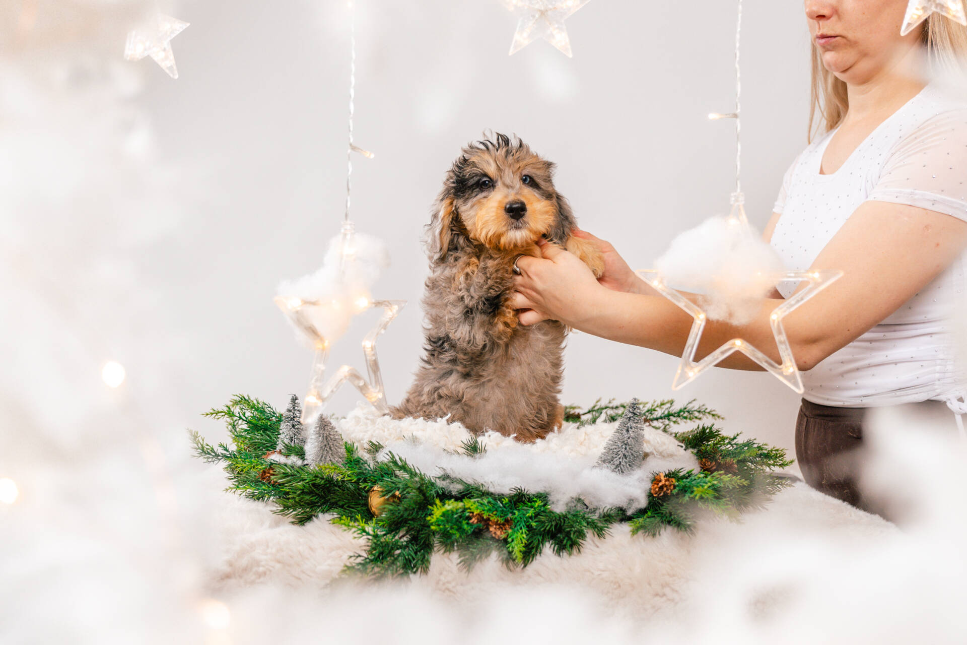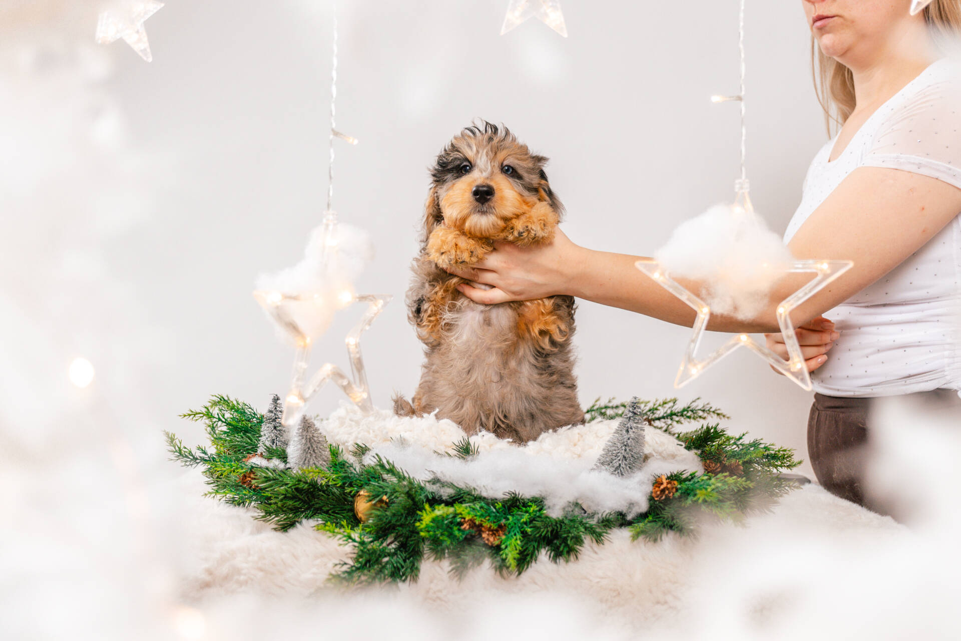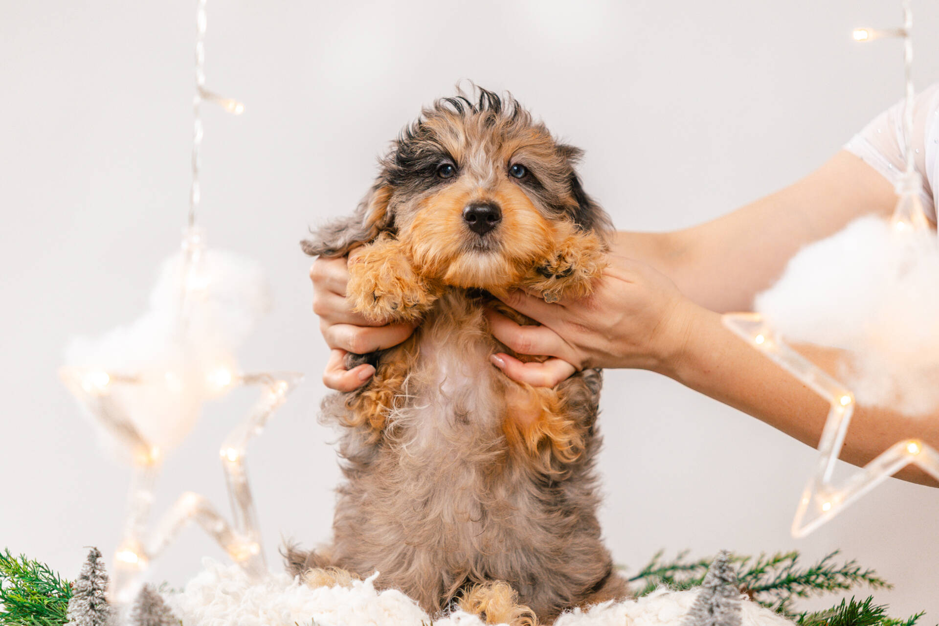 • We Breed: Mini F1 Bernedoodle (Bernese Mountain dog + Mini Poodle)