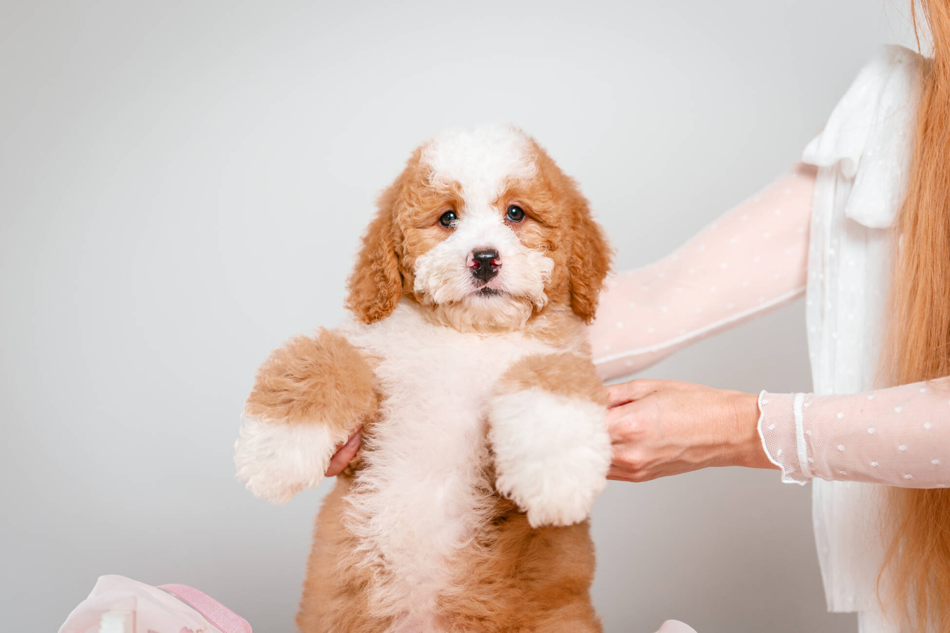 • We Breed: Mini F1 Bernedoodle (Bernese Mountain dog + Mini Poodle)