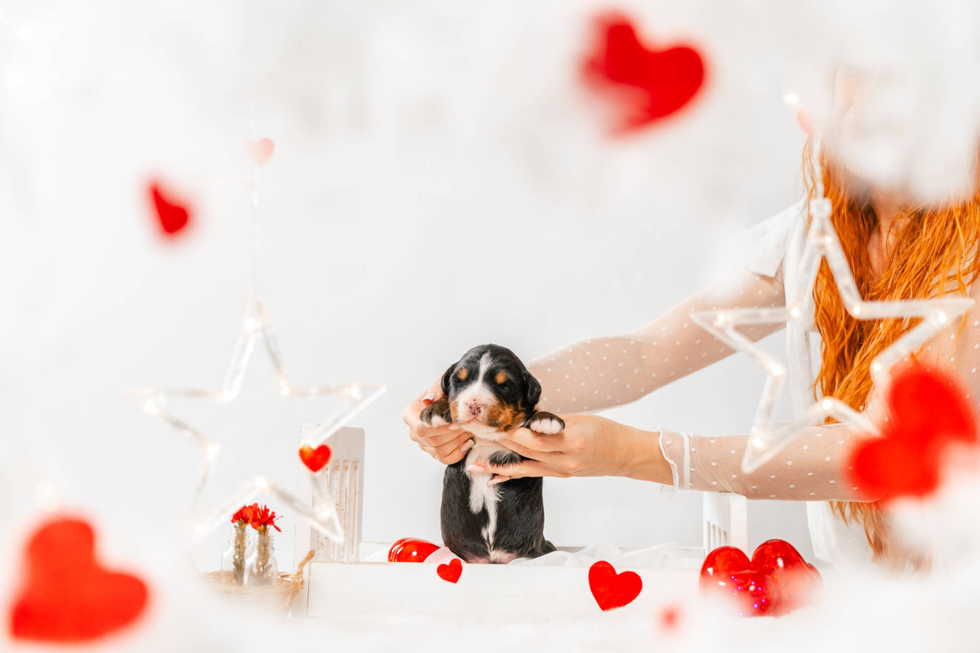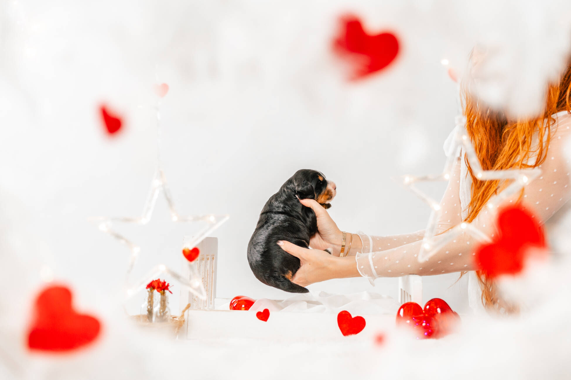 • We Breed: Mini F1 Bernedoodle (Bernese Mountain dog + Mini Poodle)