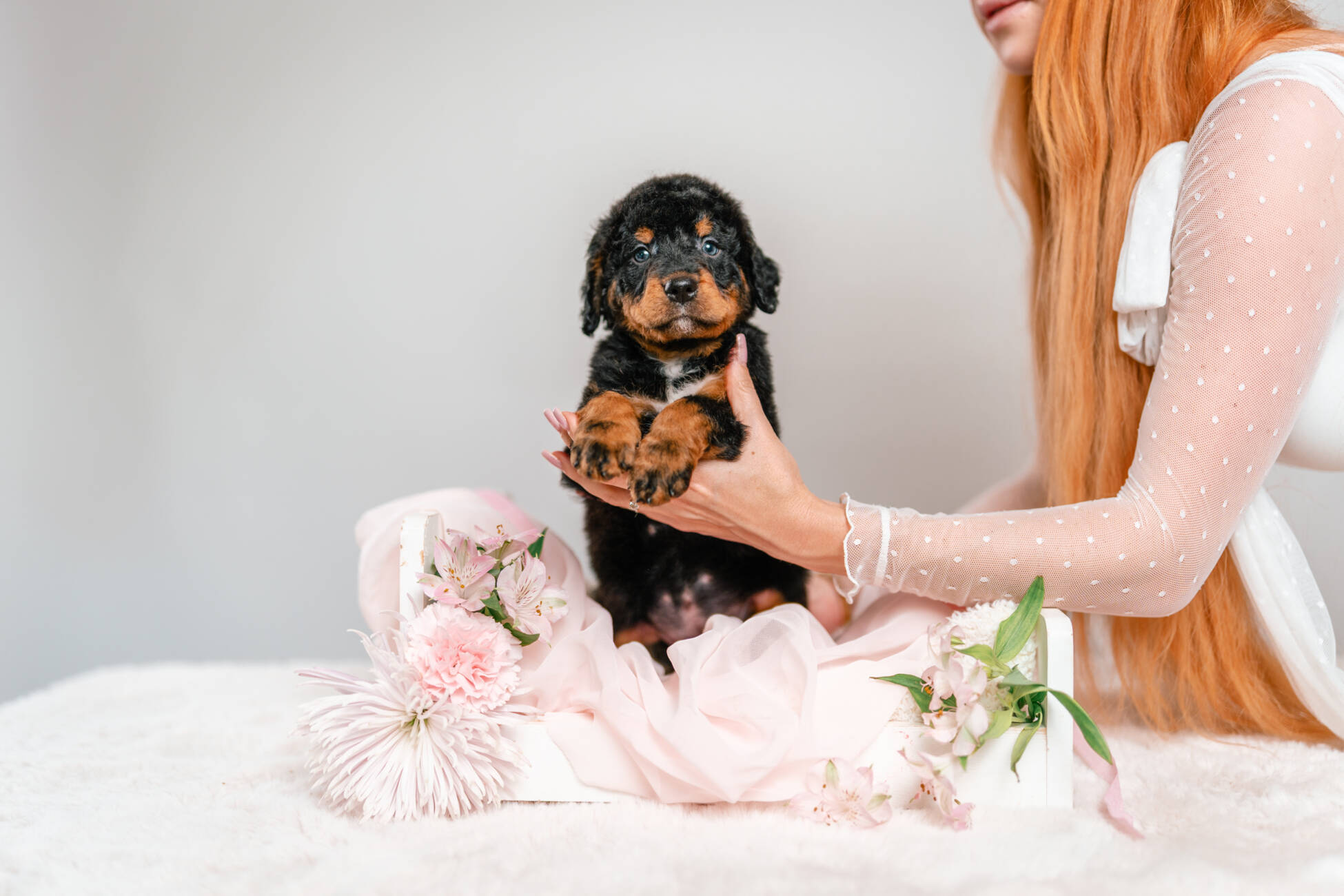 Meet Karma, a breathtaking F2 Standard Bernedoodle girl whose unique phantom-colored coat will capture your heart the moment you see her. Expected to reach the majestic, huggable full-grown size typical of a standard Bernedoodle, she makes the ultimate loyal companion for your family’s biggest adventures. Her luxurious, non-shedding curls mean you can enjoy endless couch snuggles without worrying about allergy flare-ups or sweeping up loose hair. With a gentle soul and a lifetime of love to give, sweet Karma is eagerly waiting to become the missing piece to your happy home.