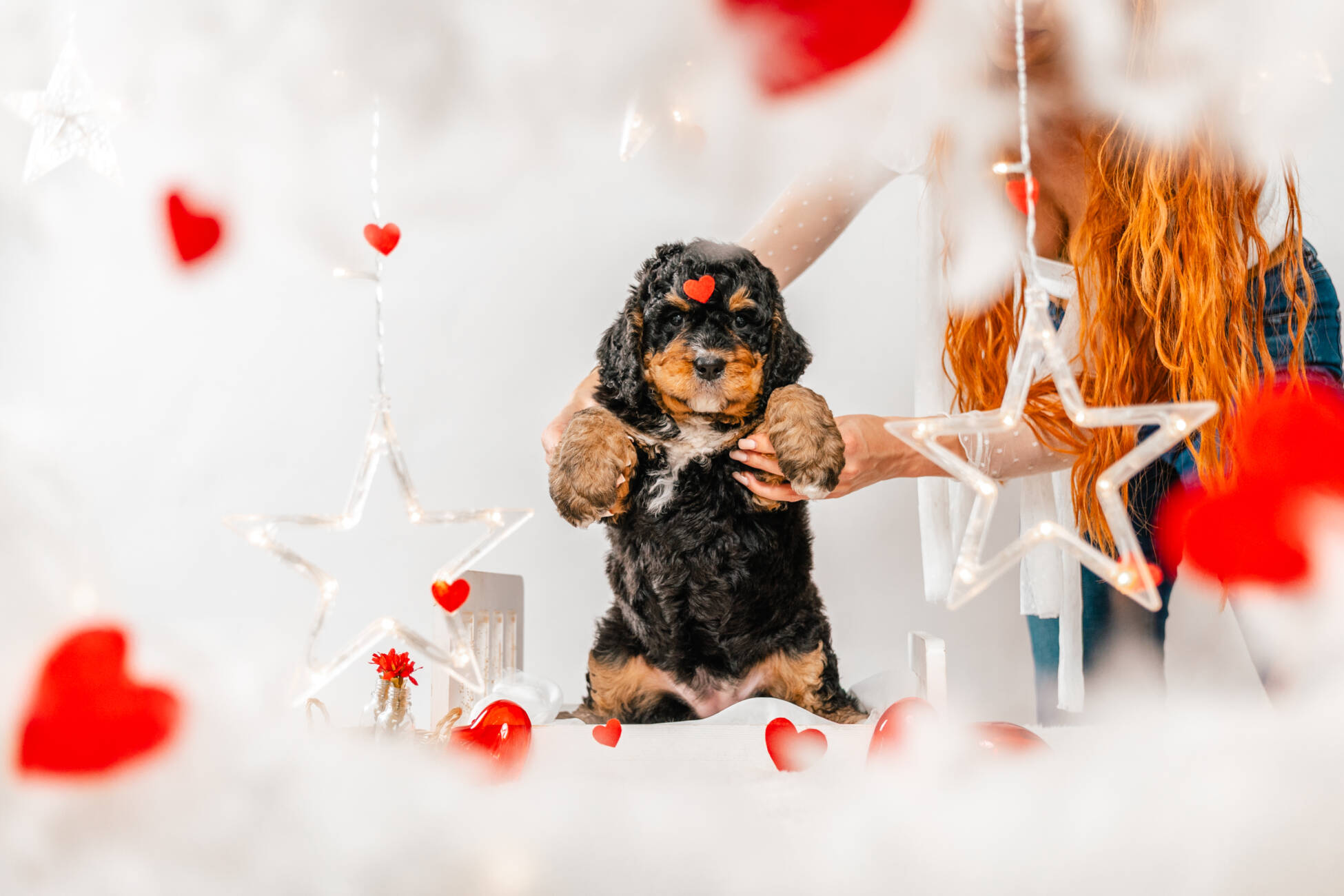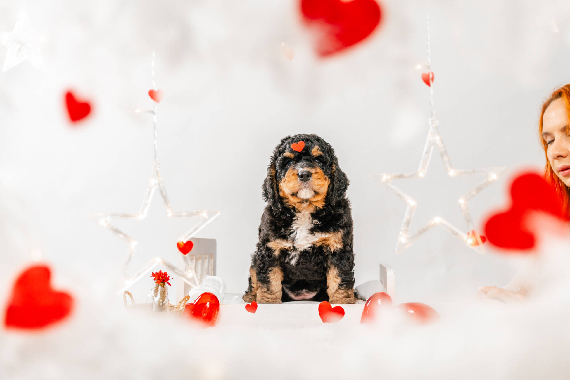 - Breed: Standard F1b Reversed Bernedoodle (Bernese Mountain Dog + St. Bernedoodle)