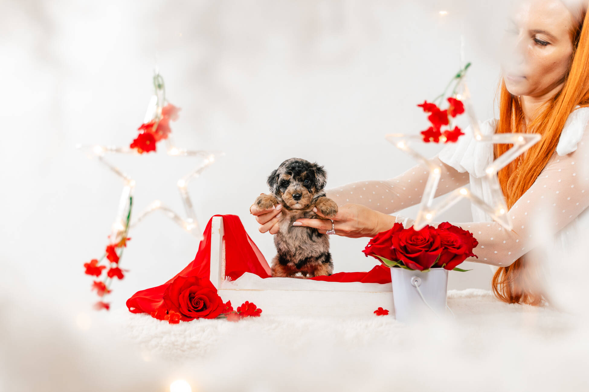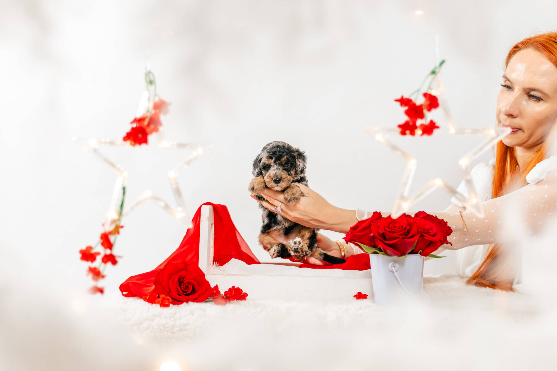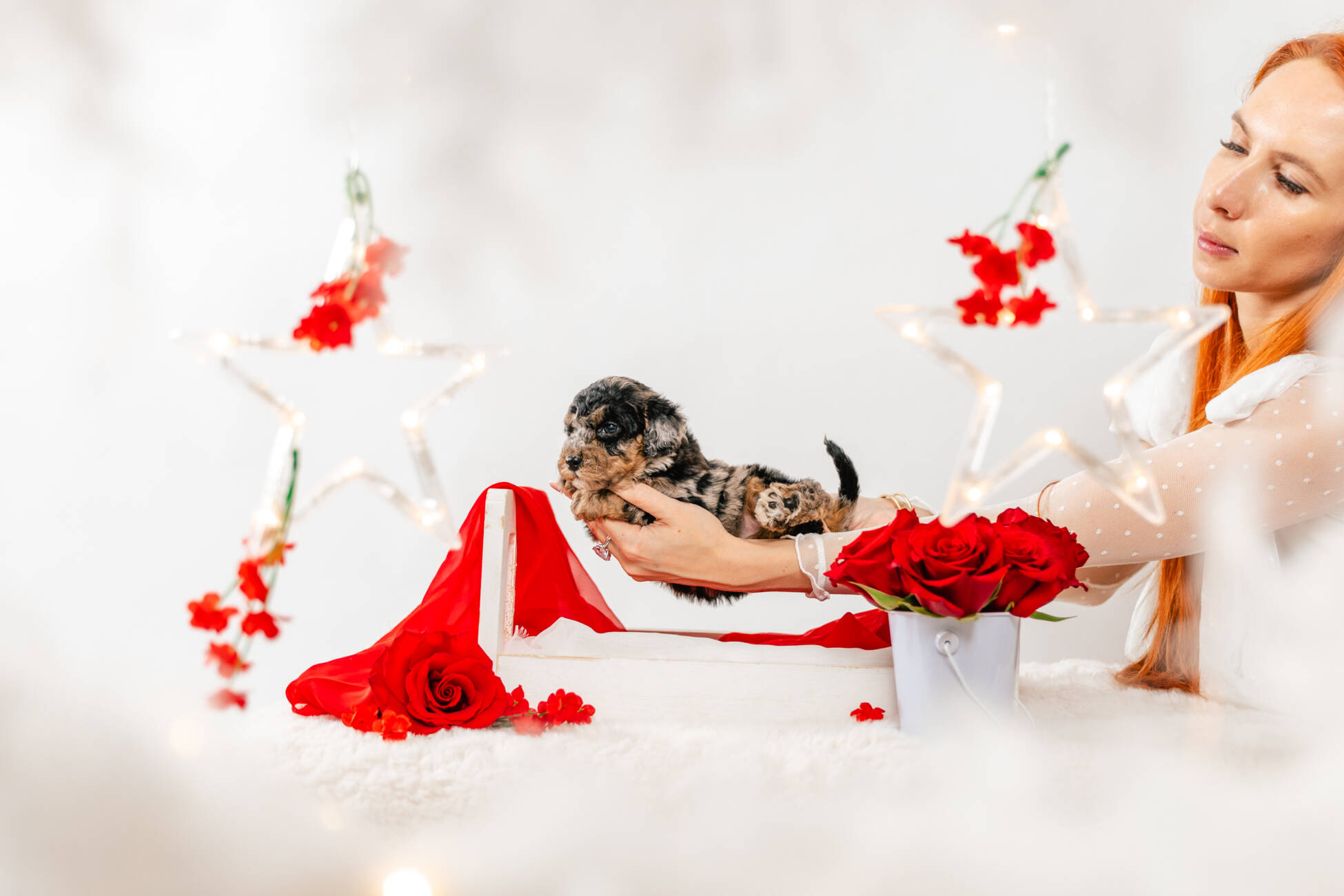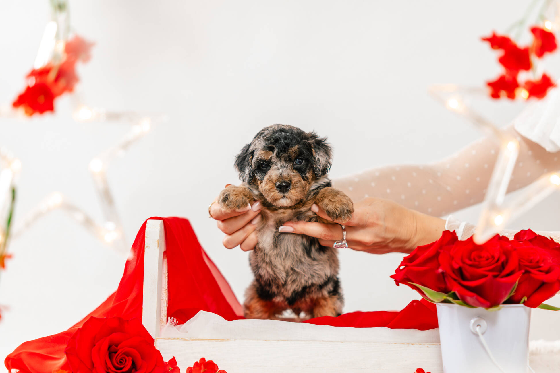 • We Breed: Mini F1 Bernedoodle (Bernese Mountain dog + Mini Poodle)