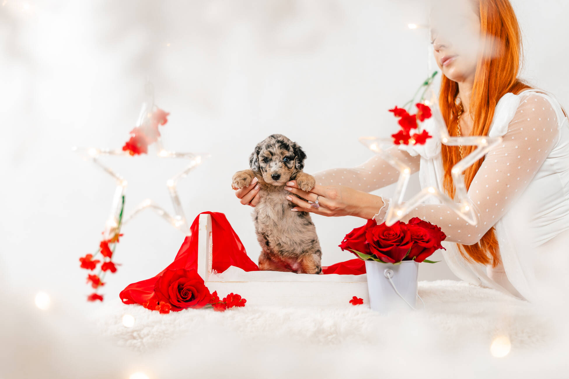 • We Breed: Mini F1 Bernedoodle (Bernese Mountain dog + Mini Poodle)