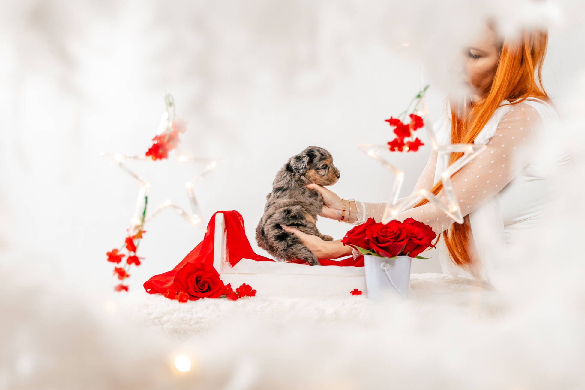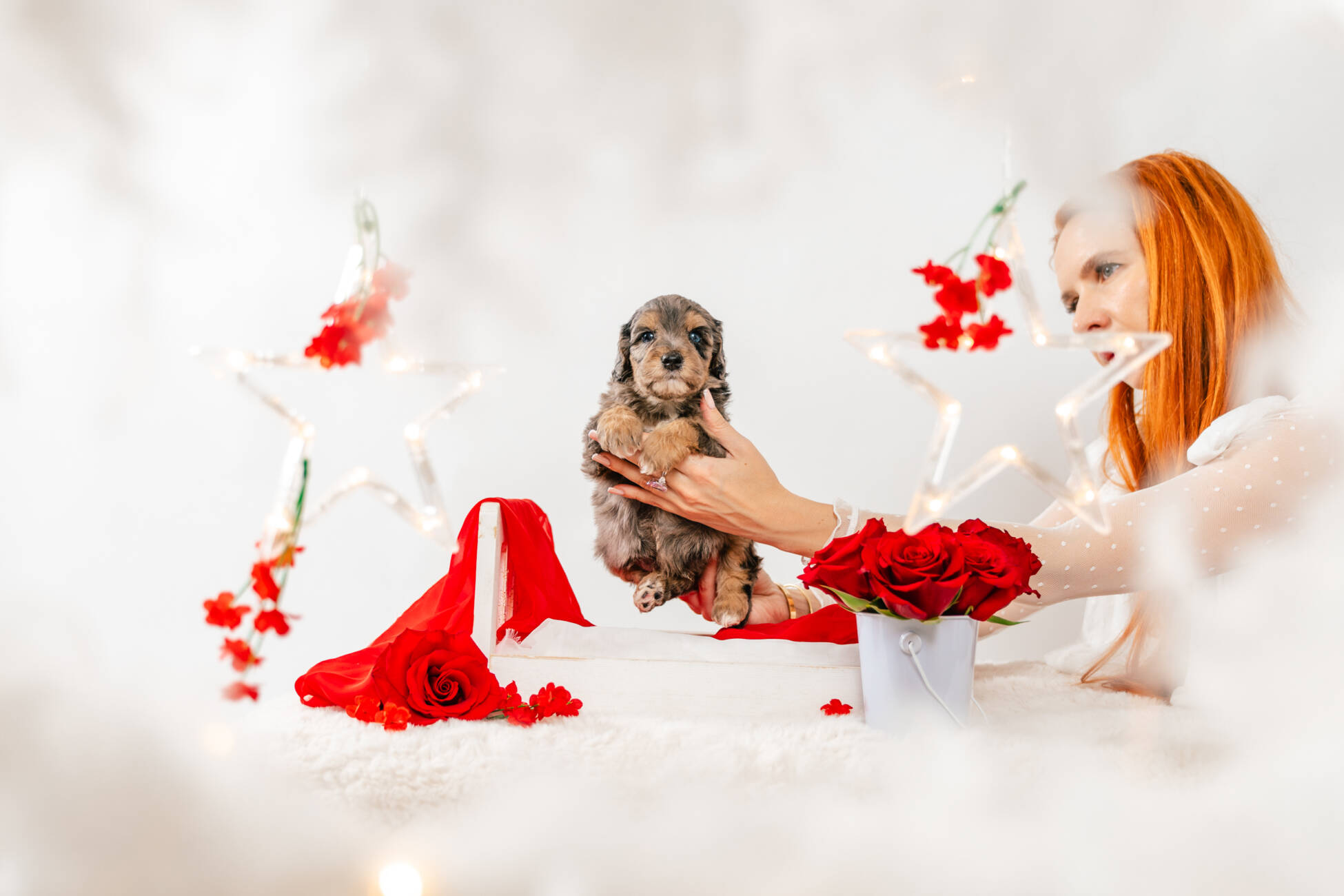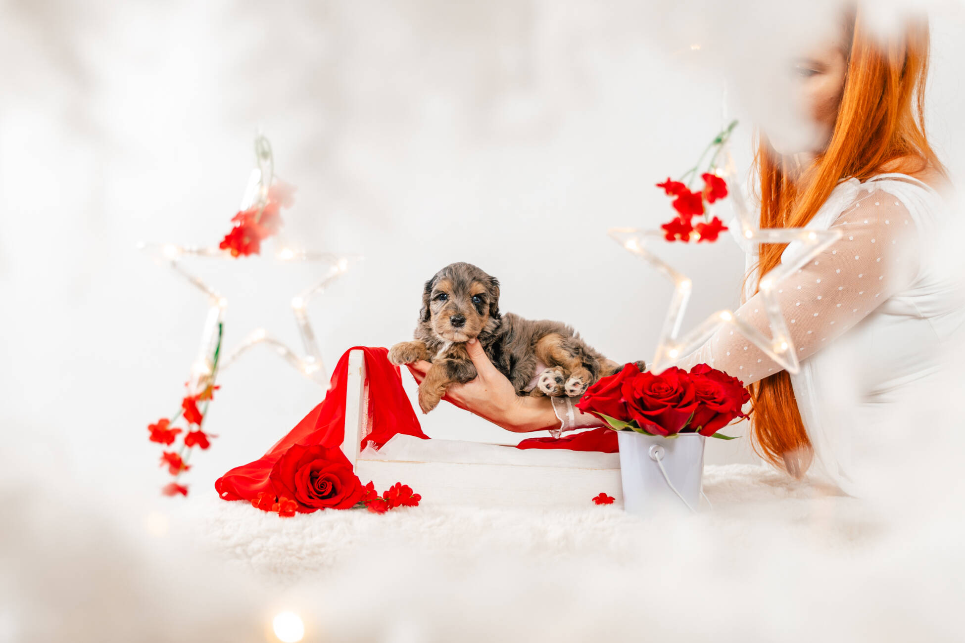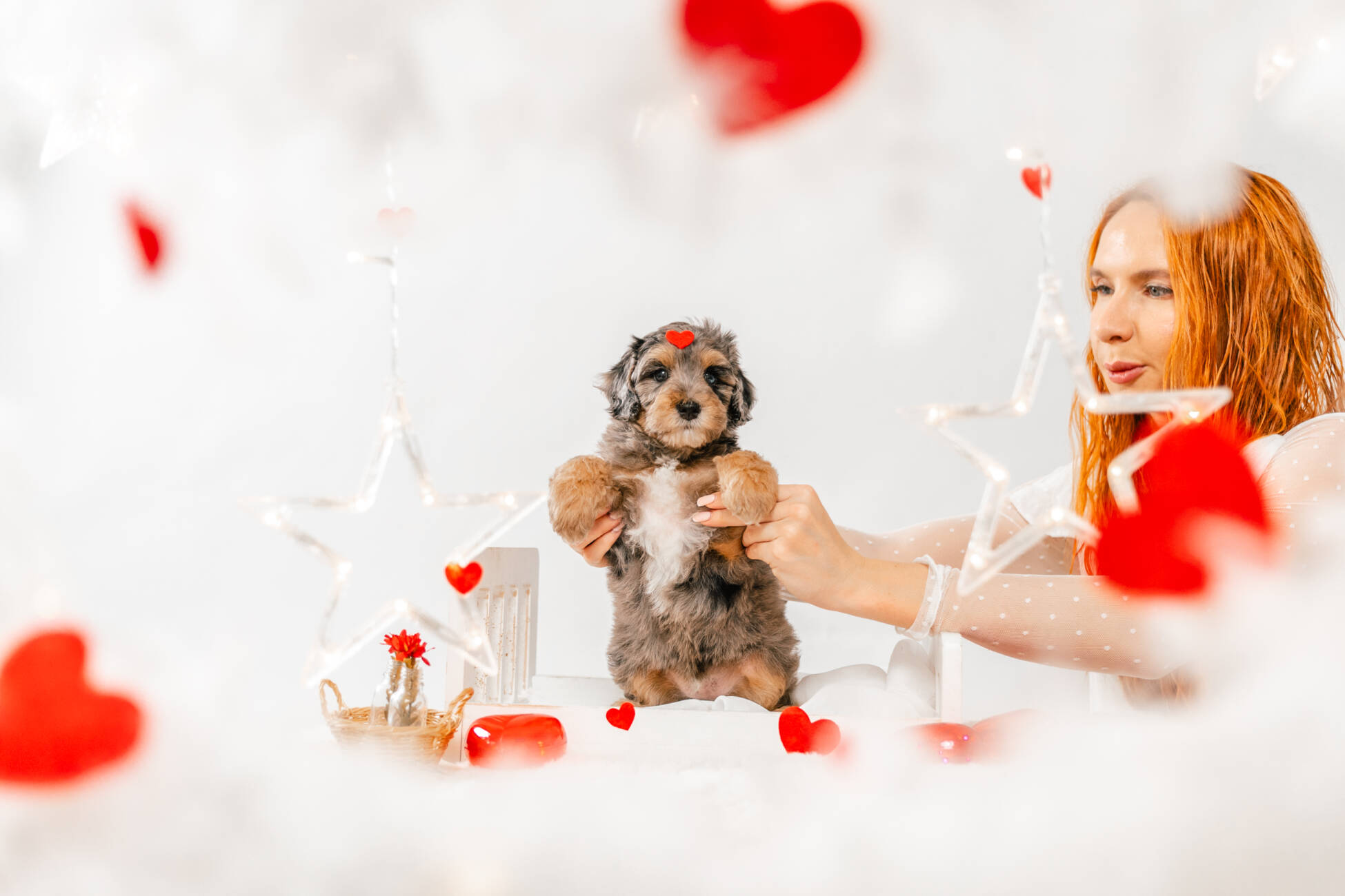 • We Breed: Mini F1 Bernedoodle (Bernese Mountain dog + Mini Poodle)