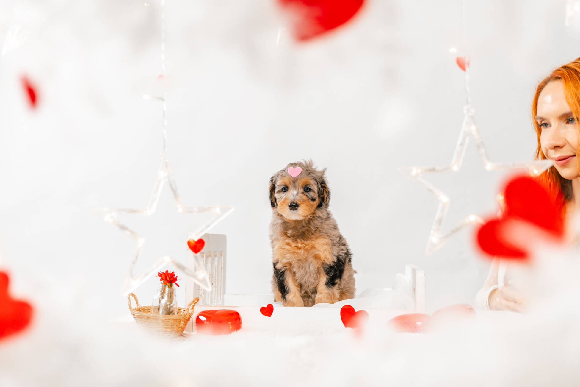 Meet Moon, an adorable mini F1b Bernedoodle with a striking merle, non-shedding coat perfect for allergy-friendly cuddles. Expected to reach just 25–30 lbs full grown, Moon is the ideal size for both cozy homes and big adventures. He’s not only smart and easy to train, but also loves snuggling up with his favorite people. Bring home Moon and enjoy endless affection from this sweet, one-of-a-kind pup!