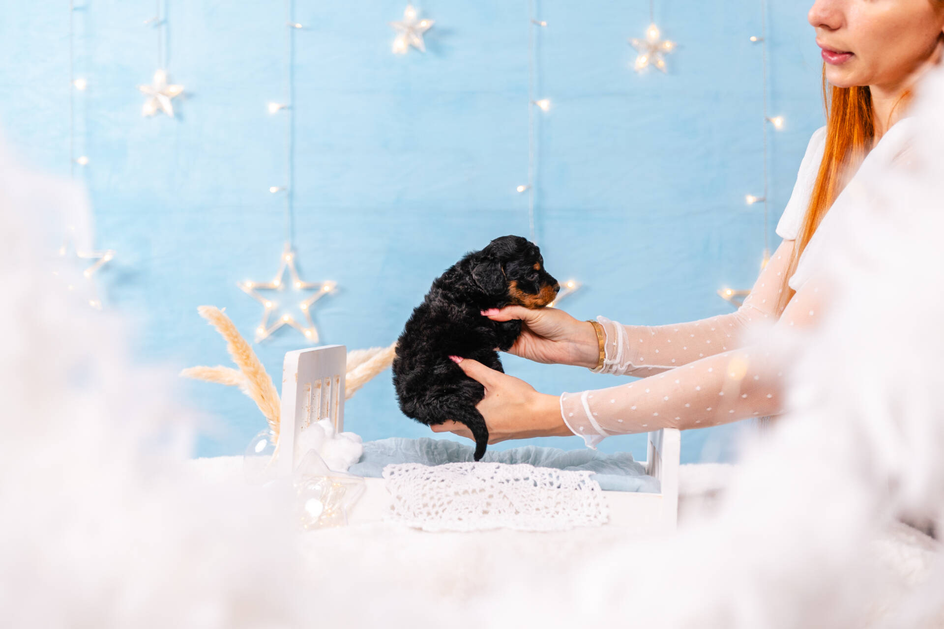 - Breed: Micro F1b Bernedoodle (Micro Bernedoodle + Mini Poodle)