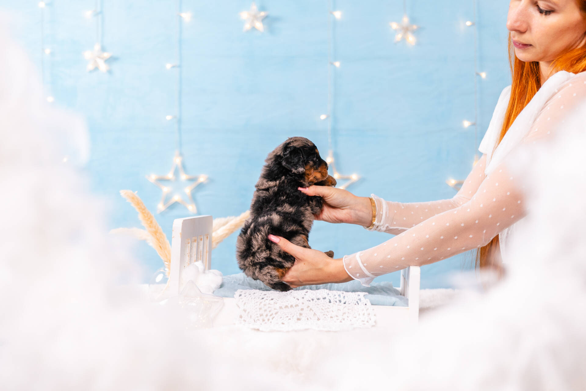 - Breed: Micro F1b Bernedoodle (Micro Bernedoodle + Mini Poodle)