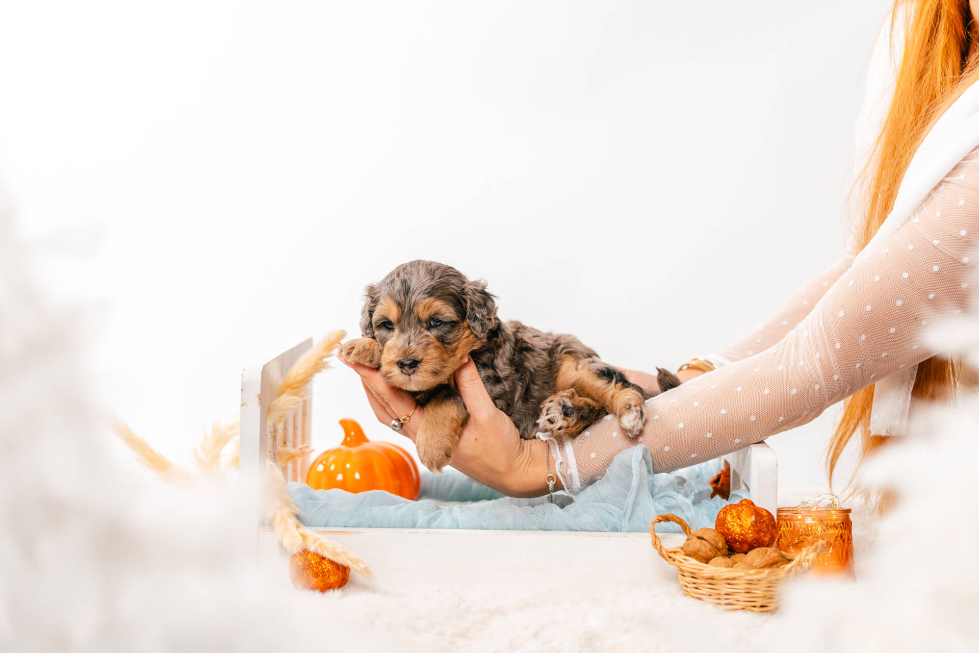 - Breed: Micro F1b Bernedoodle (Micro Bernedoodle + Mini Poodle)