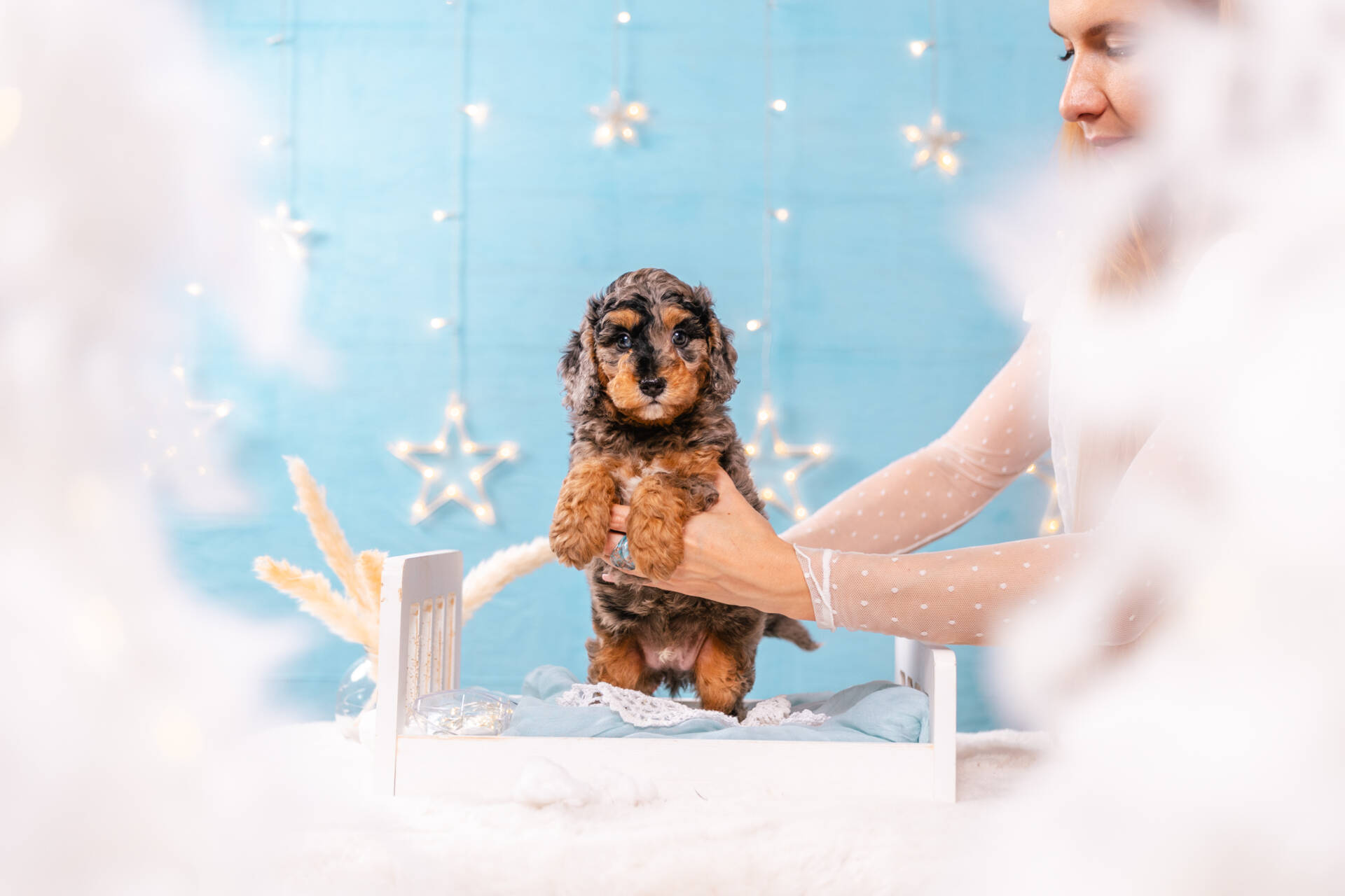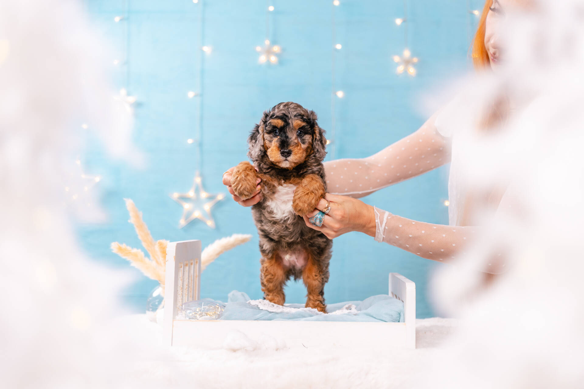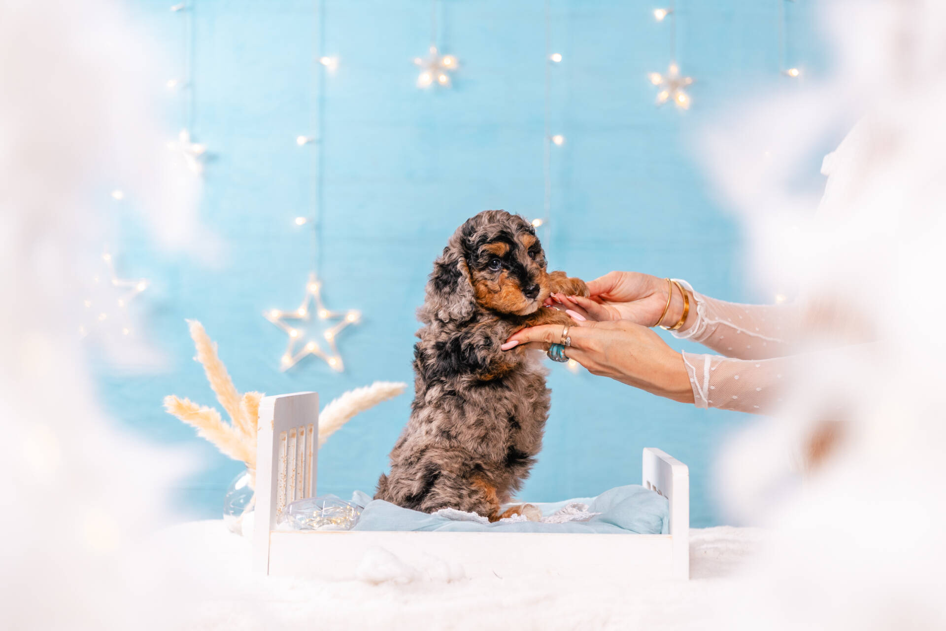 - Breed: Micro F1b Bernedoodle (Micro Bernedoodle + Mini Poodle)
