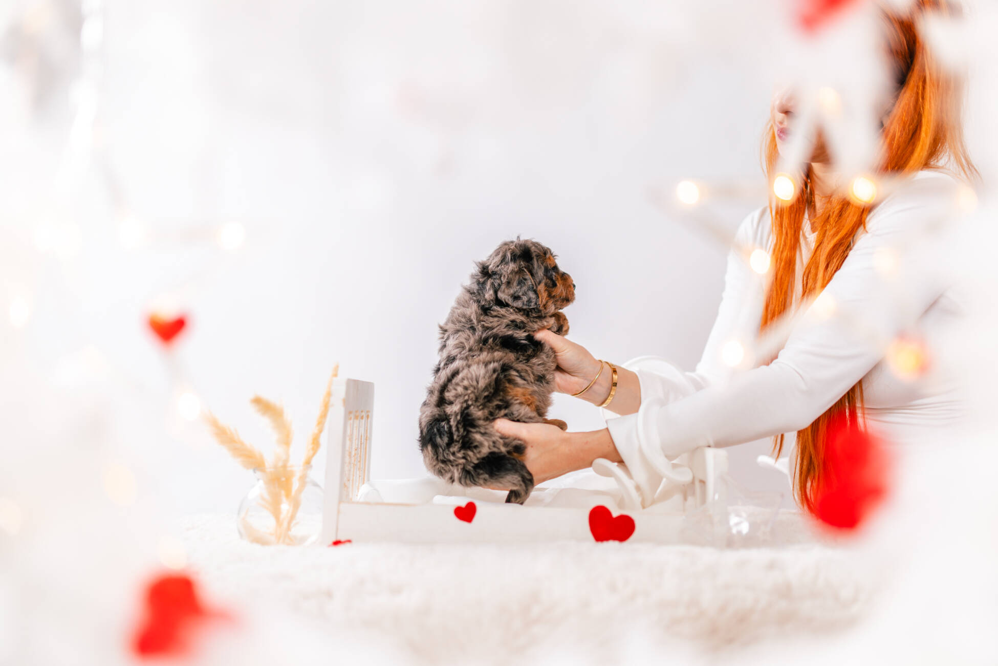 • Breed: Micro F1b Bernedoodle (Micro Bernedoodle + Toy Poodle)