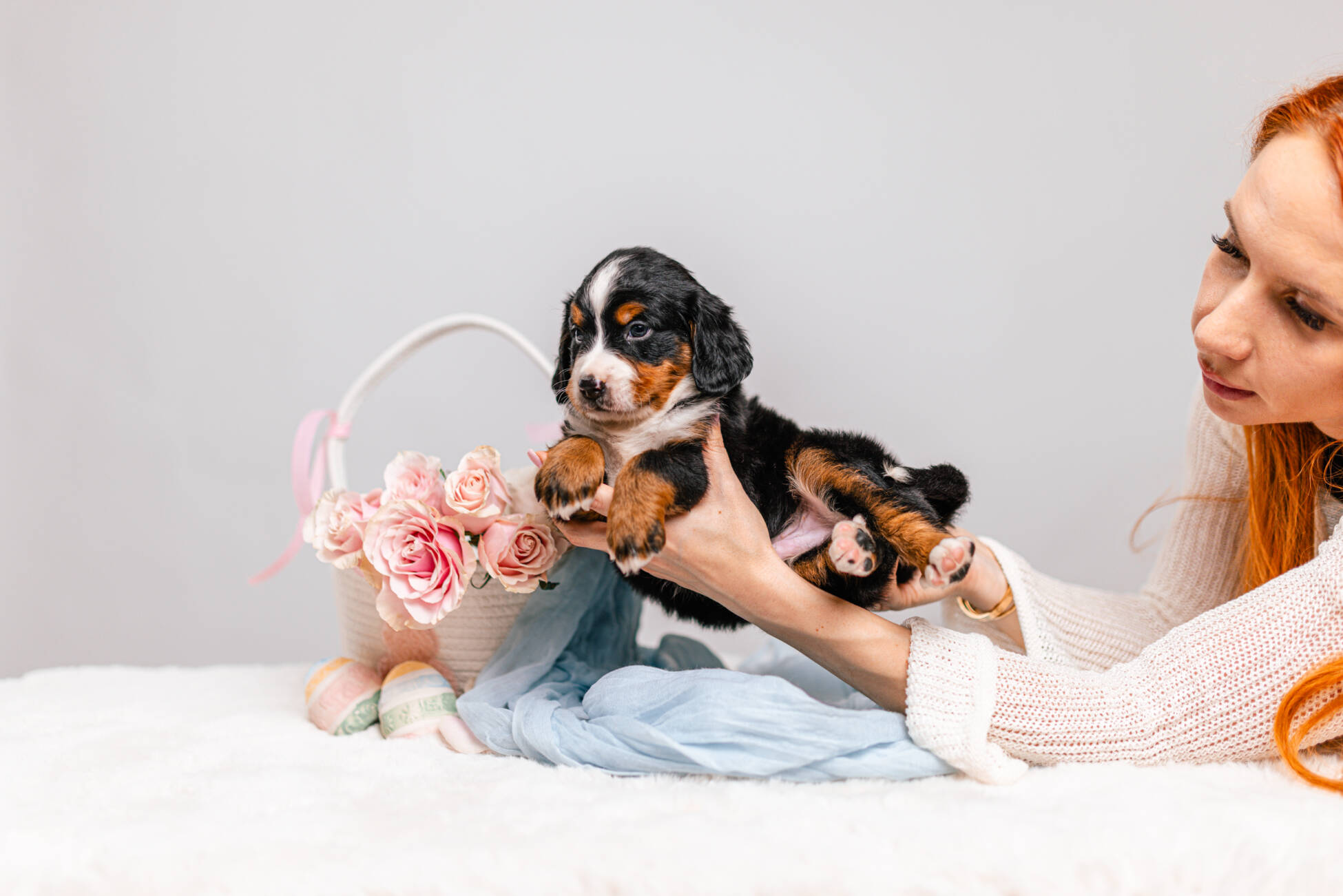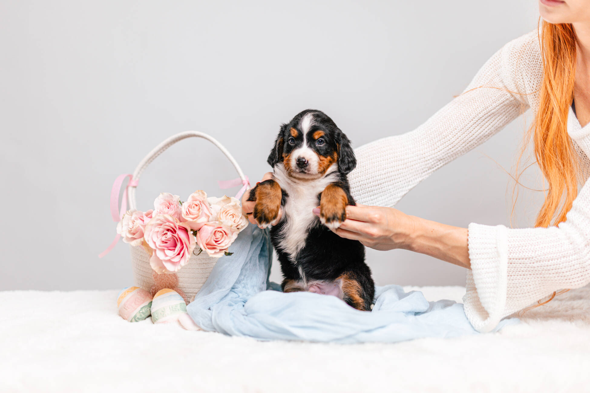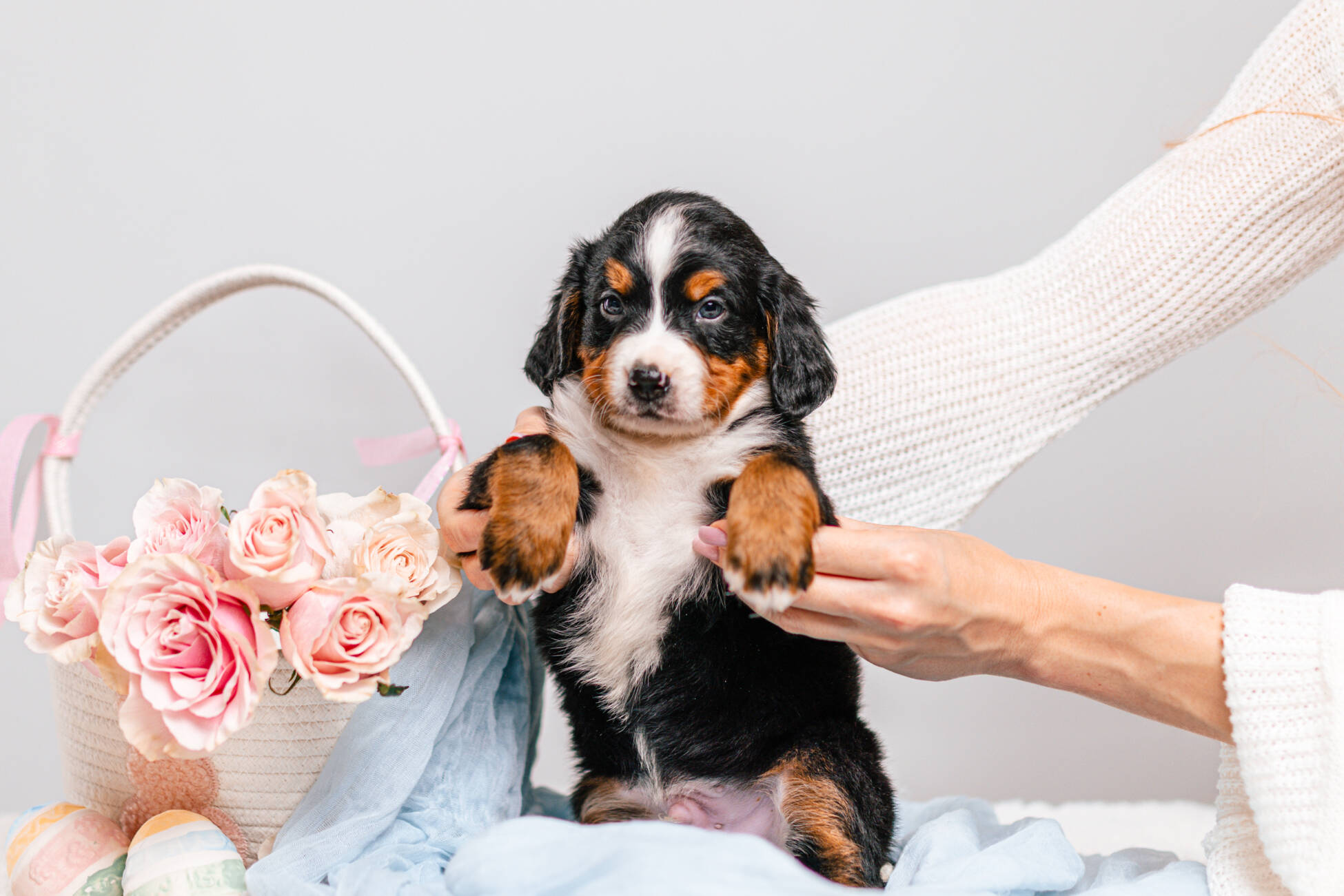 • We Breed: Mini F1 Bernedoodle (Bernese Mountain dog + Mini Poodle)