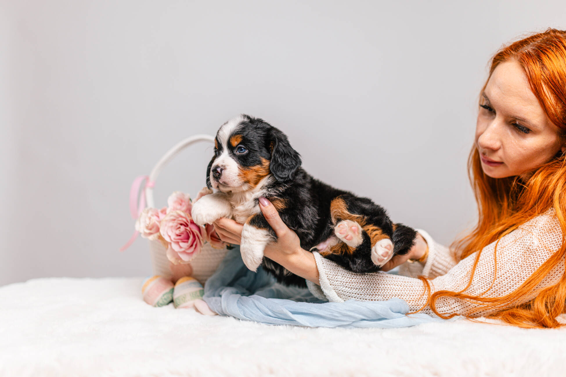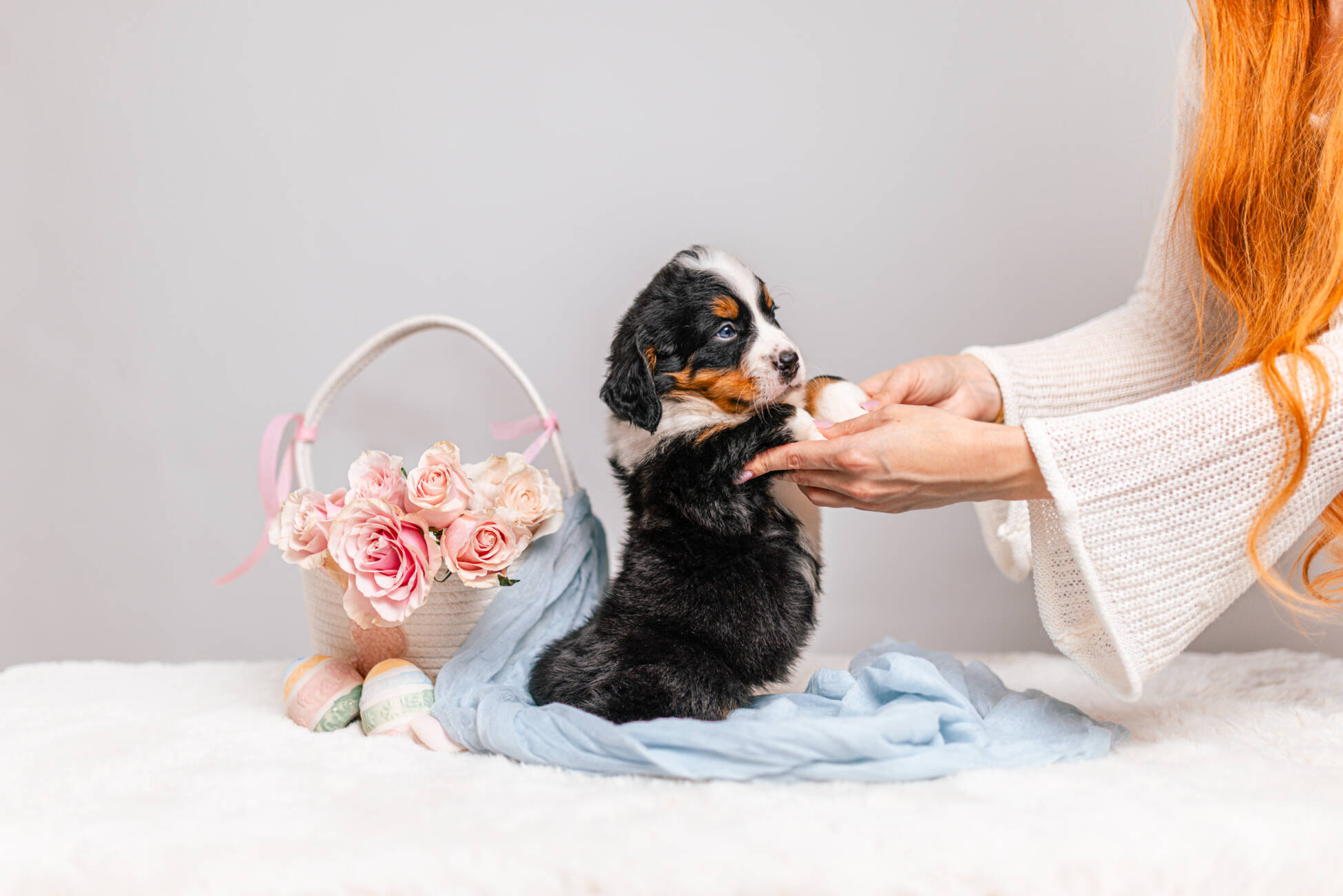 • We Breed: Mini F1 Bernedoodle (Bernese Mountain dog + Mini Poodle)